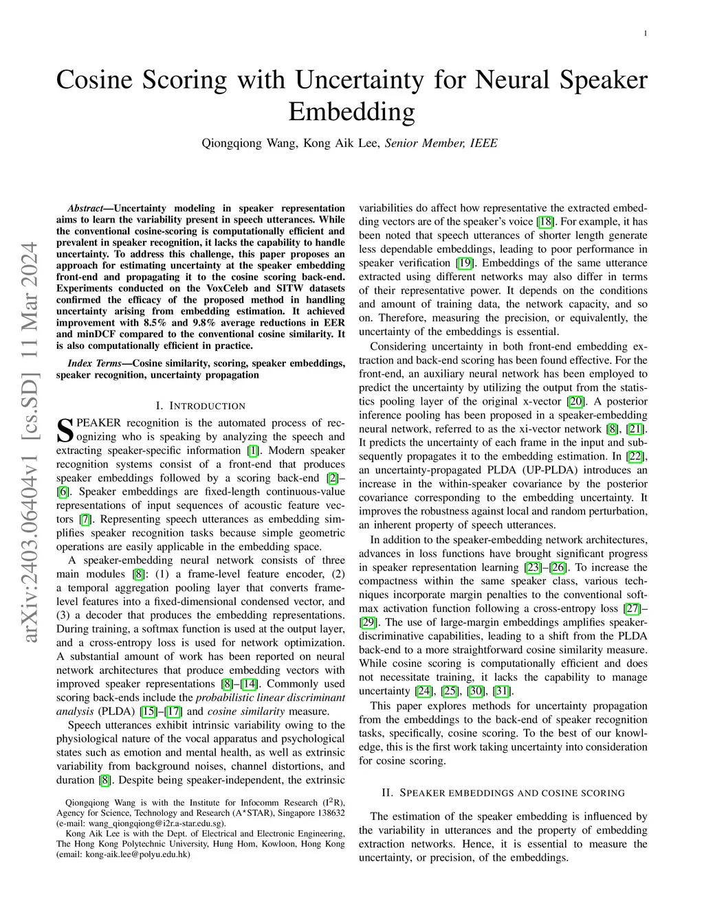 Cosine Scoring with Uncertainty for Neural Speaker Embedding