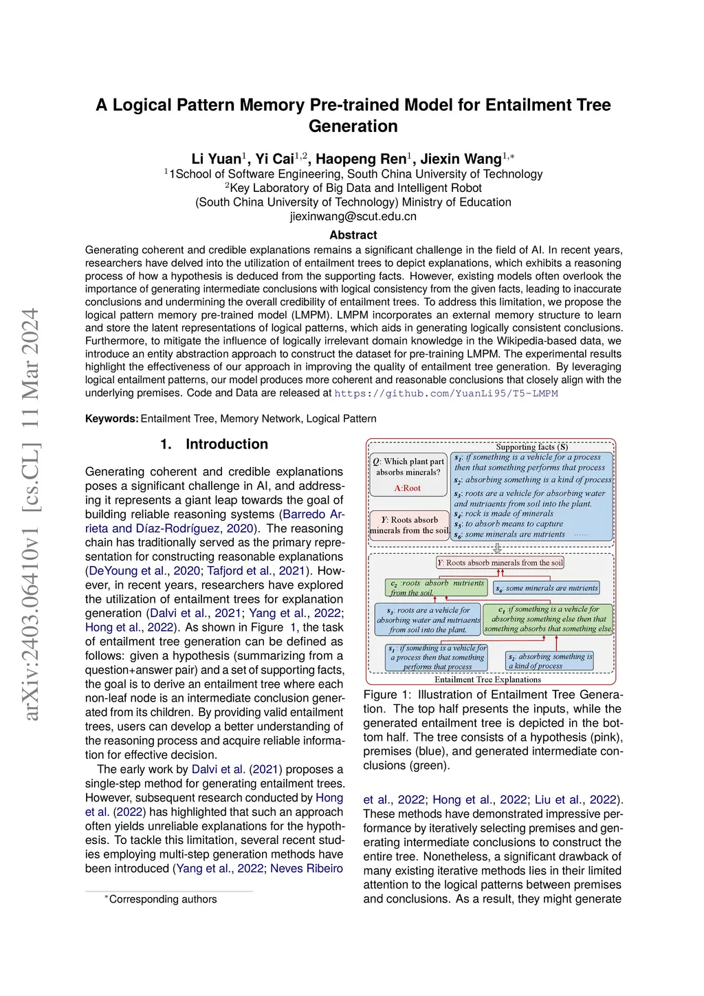 A Logical Pattern Memory Pre-trained Model for Entailment Tree