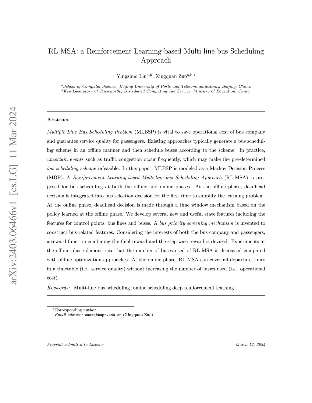 RL-MSA: a Reinforcement Learning-based Multi-line bus Scheduling