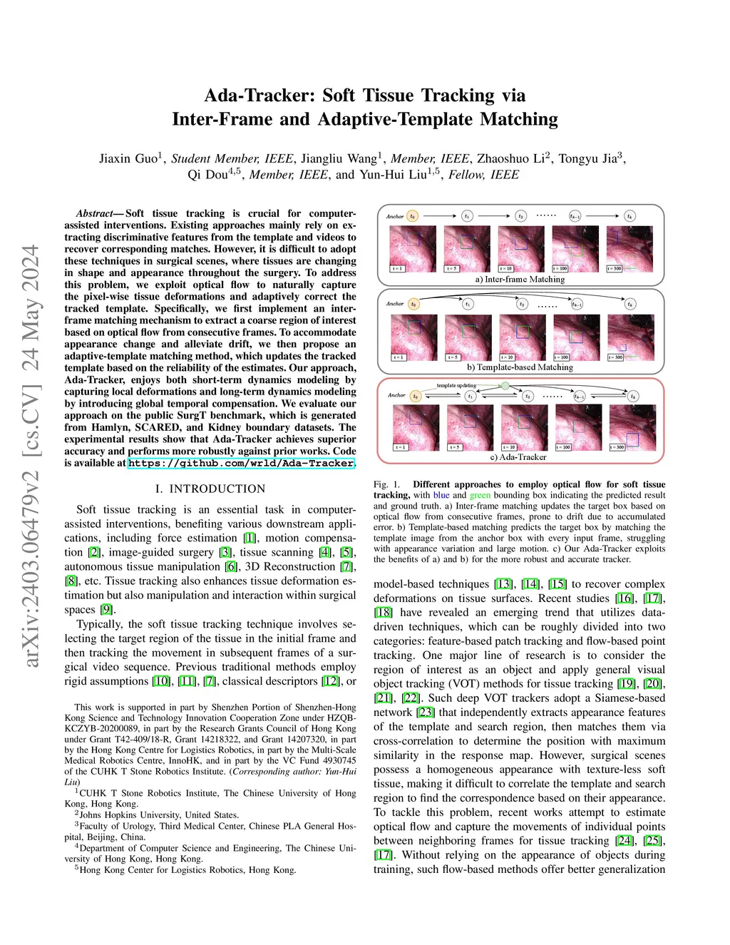 Ada-Tracker: Soft Tissue Tracking via Inter-Frame and Adaptive-Template