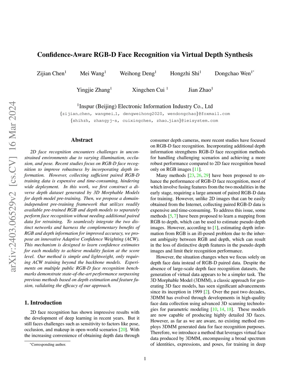 Confidence-Aware RGB-D Face Recognition via Virtual Depth Synthesis