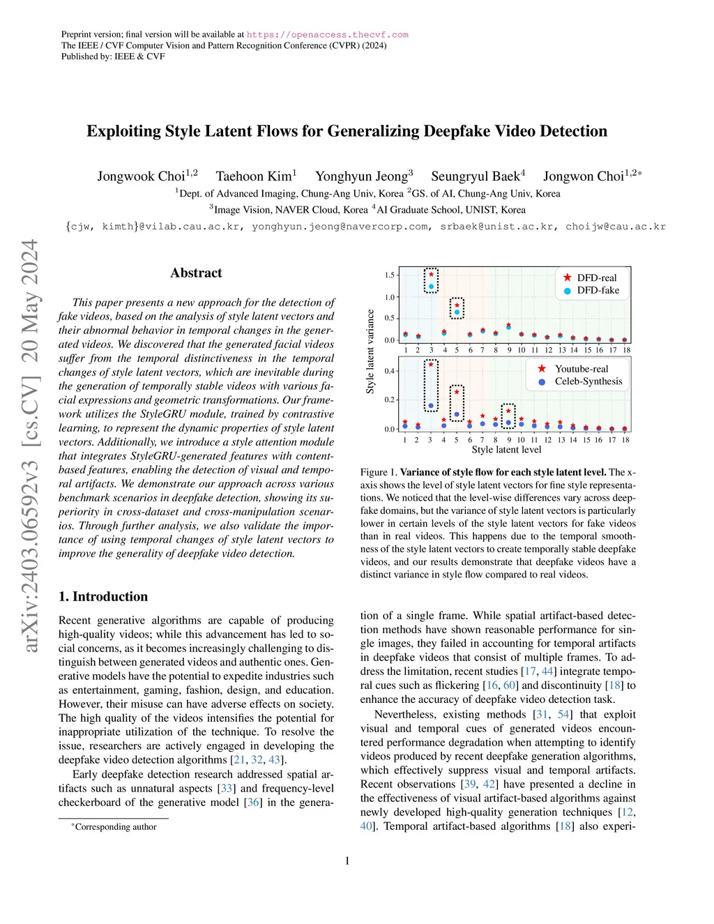 Exploiting Style Latent Flows for Generalizing Deepfake Video Detection