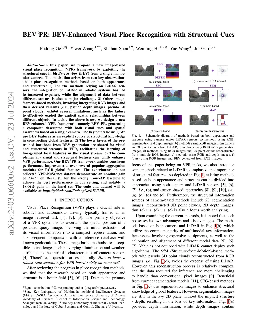 BEV2PR: BEV-Enhanced Visual Place Recognition with Structural Cues