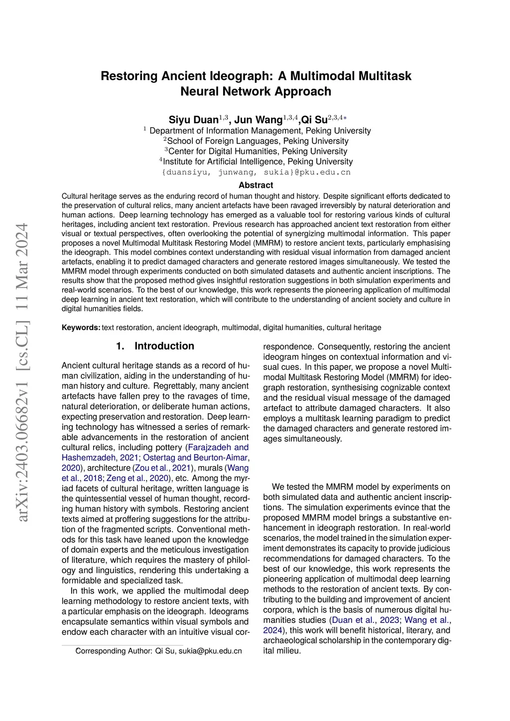 Restoring Ancient Ideograph: A Multimodal Multitask Neural Network