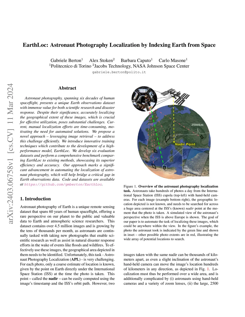 EarthLoc: Astronaut Photography Localization by Indexing Earth from