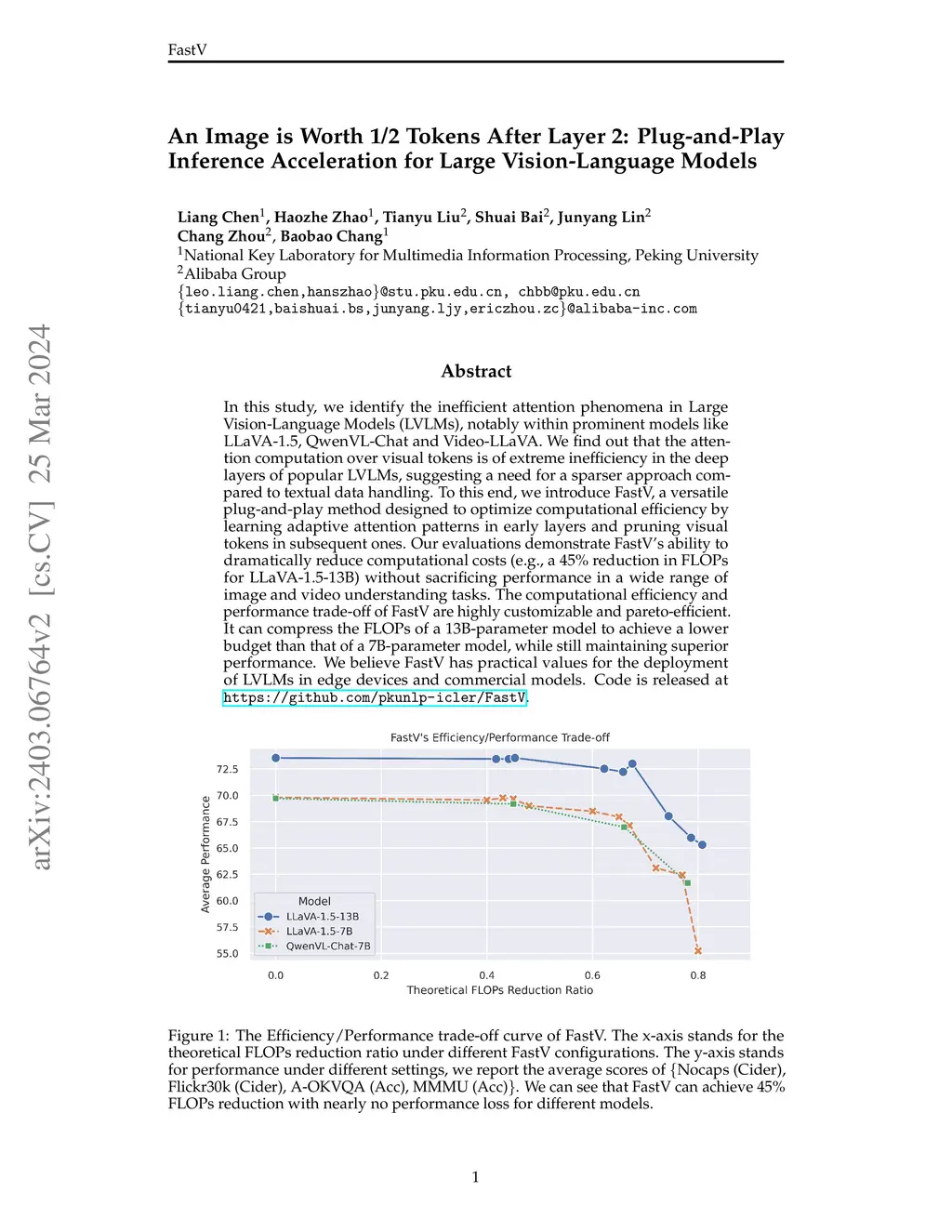An Image is Worth 1/2 Tokens After Layer 2: Plug-and-Play Inference