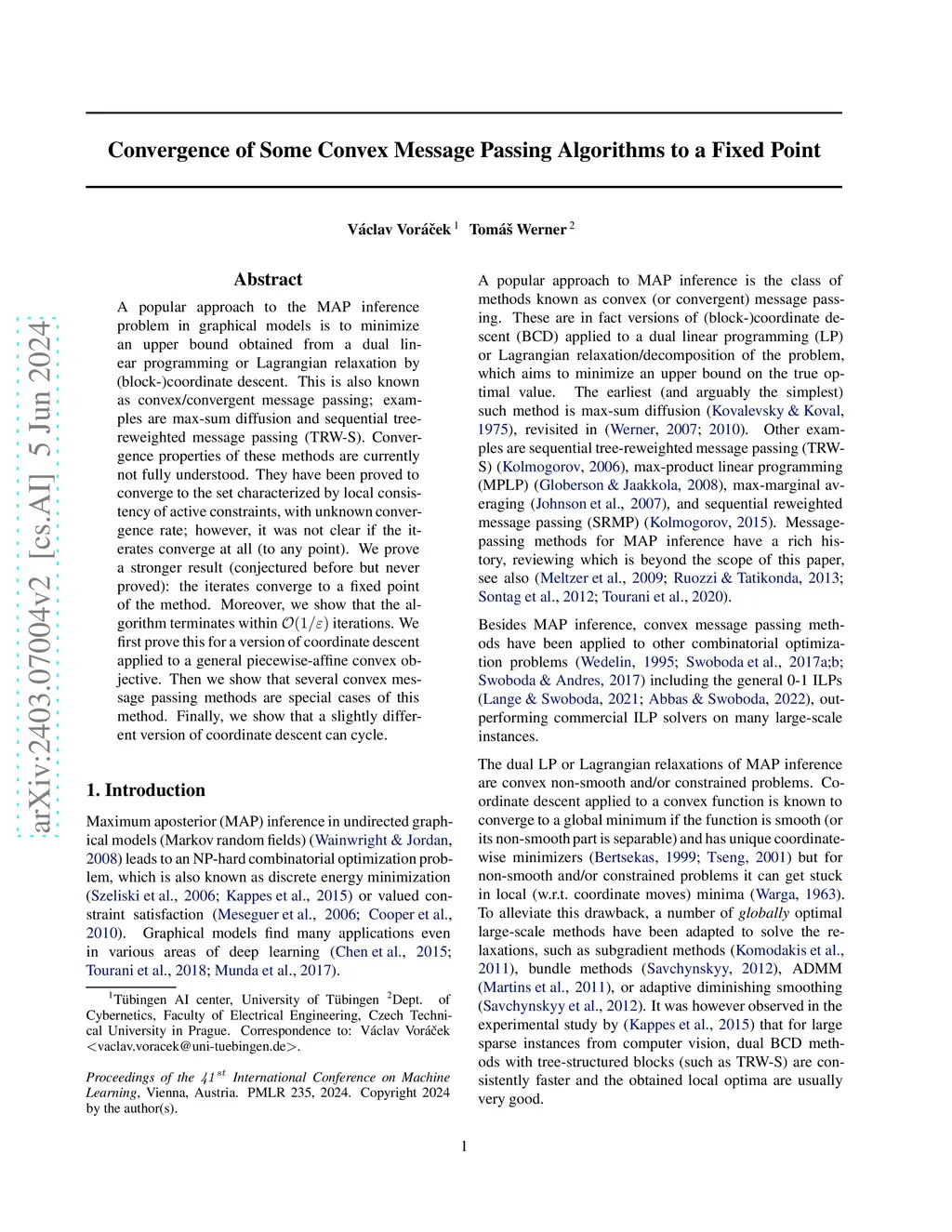 Convergence of Some Convex Message Passing Algorithms to a Fixed Point
