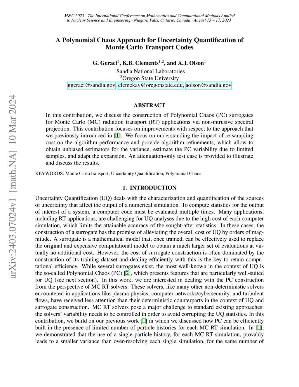 In this contribution, we discuss the construction of Polynomial Chaos surrogates for Monte Carlo radiation transport applications via non-intrusive spectral projection. This contribution focuses on improvements with respect to the approach that we previously introduced in previous work. We focus on understanding the impact of re-sampling cost on the algorithm performance and provide algorithm refinements, which allow to obtain unbiased estimators for the variance, estimate the PC variability due to limited samples, and adapt the expansion. An attenuation-only test case is provided to illustrate and discuss the results.