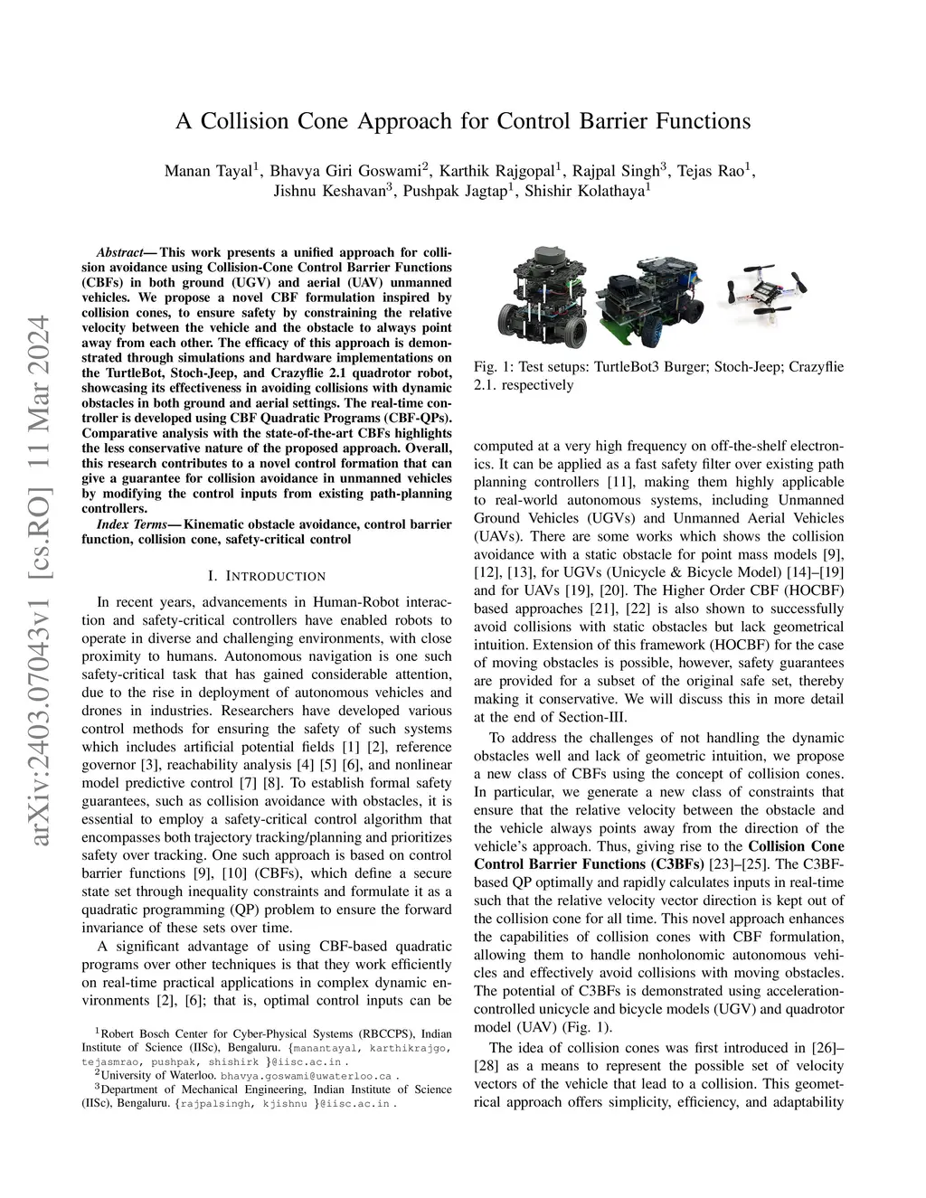 A Collision Cone Approach for Control Barrier Functions