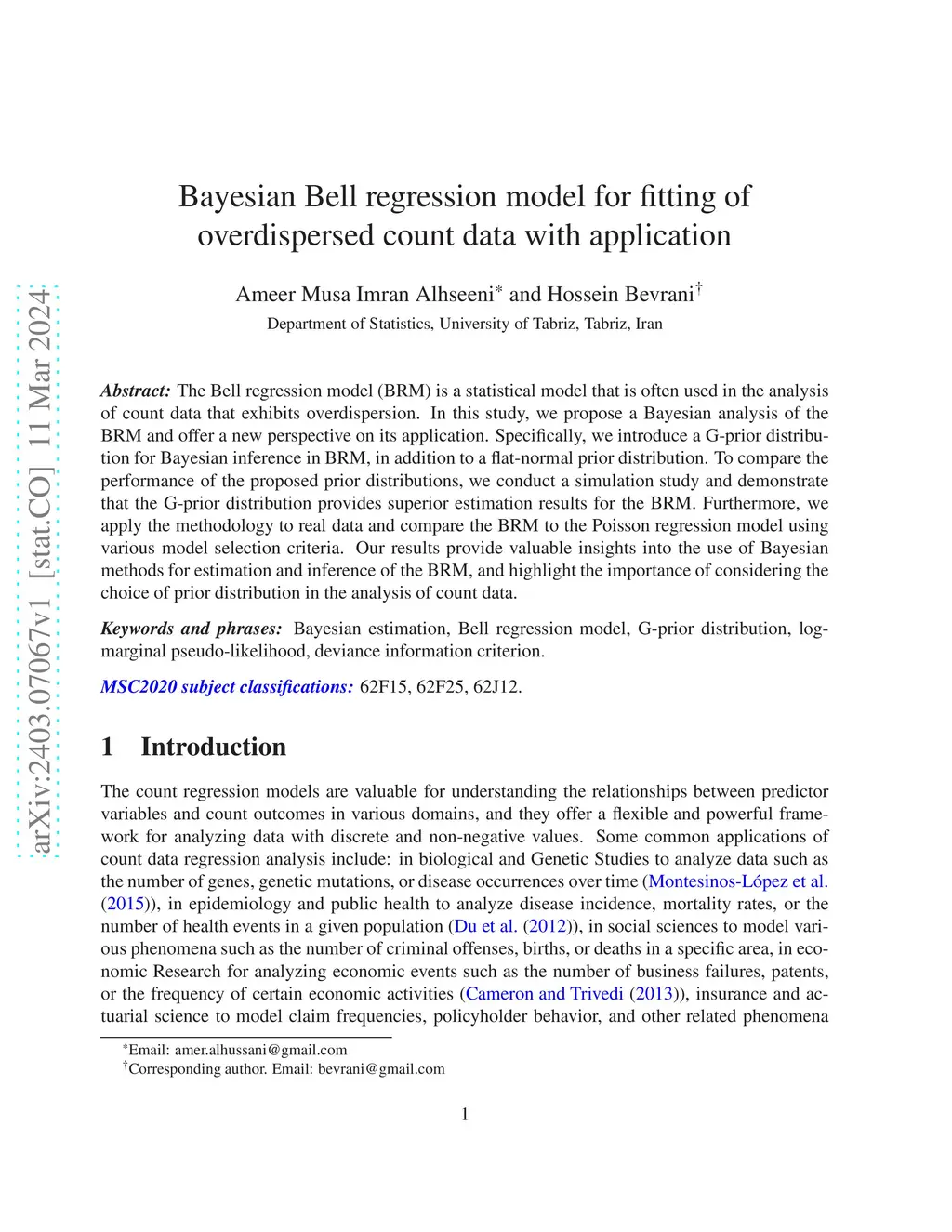 The Bell regression model (BRM) is a statistical model that is often used in the analysis of count data that exhibits overdispersion. In this study, we propose a Bayesian analysis of the BRM and offer a new perspective on its application. Specifically, we introduce a G-prior distribution for Bayesian inference in BRM, in addition to a flat-normal prior distribution. To compare the performance of the proposed prior distributions, we conduct a simulation study and demonstrate that the G-prior distribution provides superior estimation results for the BRM. Furthermore, we apply the methodology to real data and compare the BRM to the Poisson regression model using various model selection criteria. Our results provide valuable insights into the use of Bayesian methods for estimation and inference of the BRM and highlight the importance of considering the choice of prior distribution in the analysis of count data.