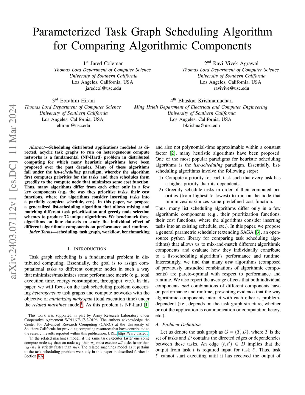 Parameterized Task Graph Scheduling Algorithm for Comparing Algorithmic