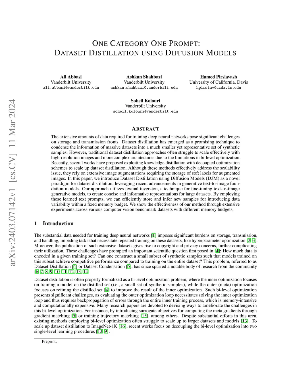 One Category One Prompt: Dataset Distillation using Diffusion Models
