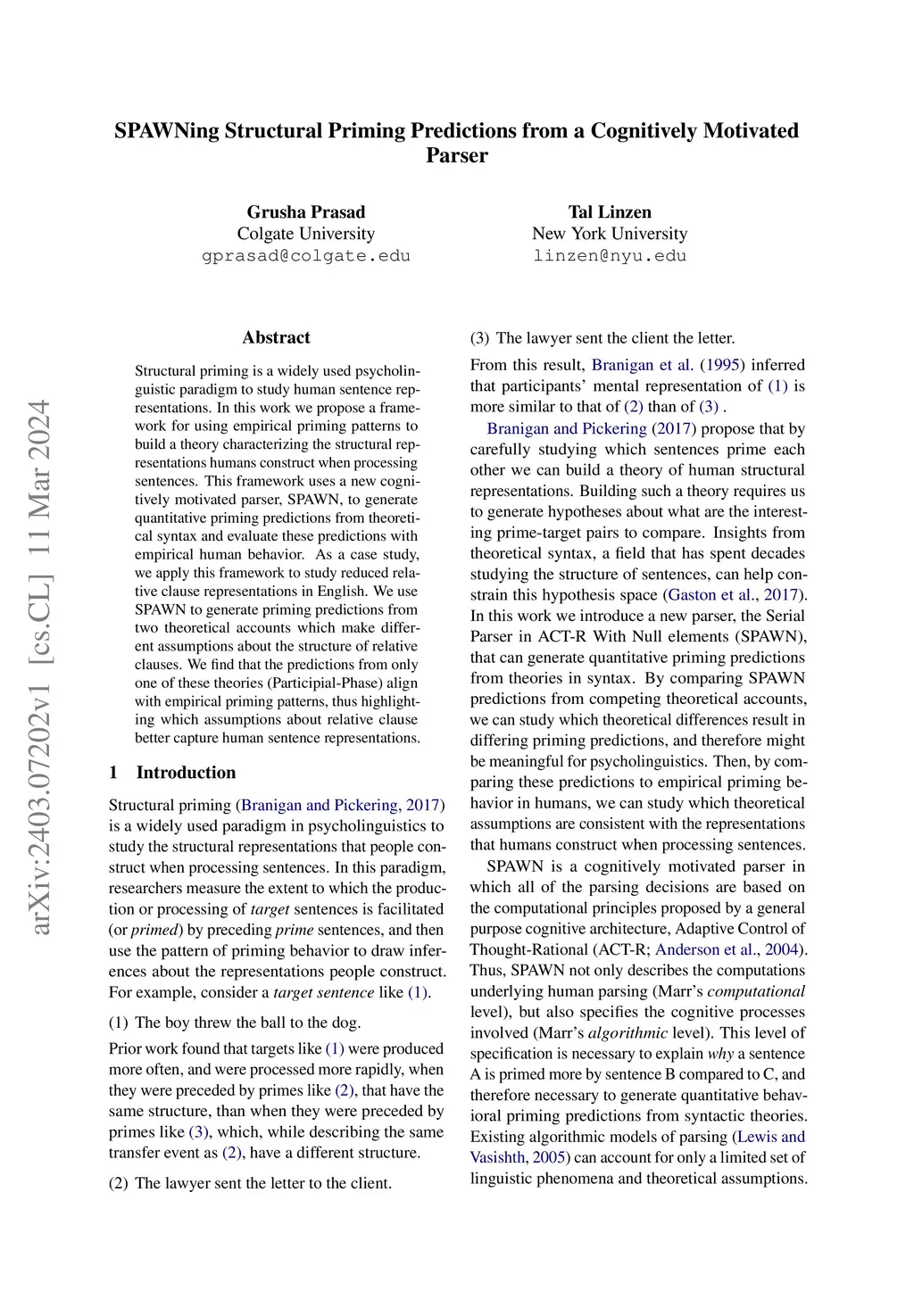 SPAWNing Structural Priming Predictions from a Cognitively Motivated