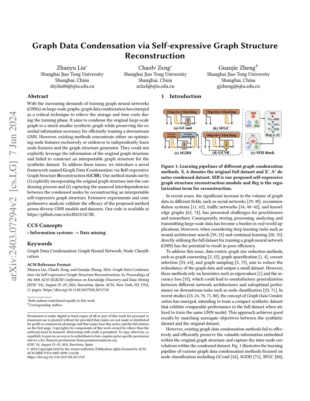 Graph Data Condensation via Self-expressive Graph Structure