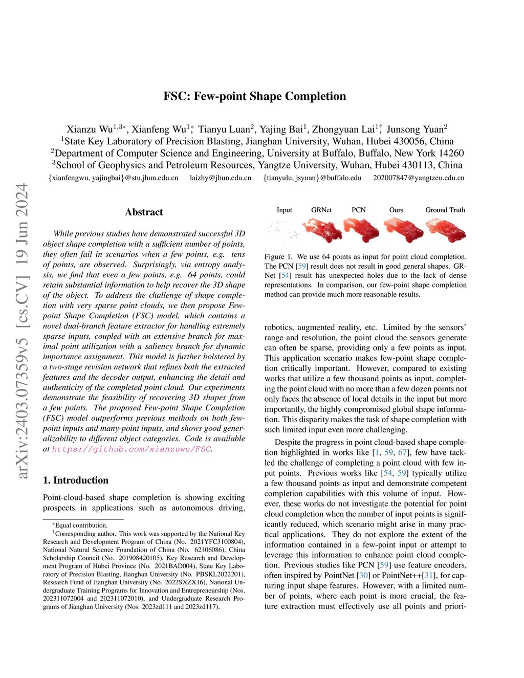 While previous studies have demonstrated successful 3D object shape completion with a sufficient number of points, they often fail in scenarios when a few points, e.g. tens of points, are observed. Surprisingly, via entropy analysis, we find that even a few points, e.g. 64 points, could retain substantial information to help recover the 3D shape of the object. To address the challenge of shape completion with very sparse point clouds, we then propose Few-point Shape Completion (FSC) model, which contains a novel dual-branch feature extractor for handling extremely sparse inputs, coupled with an extensive branch for maximal point utilization with a saliency branch for dynamic importance assignment. This model is further bolstered by a two-stage revision network that refines both the extracted features and the decoder output, enhancing the detail and authenticity of the completed point cloud. Our experiments demonstrate the feasibility of recovering 3D shapes from a few points. The proposed Few-point Shape Completion (FSC) model outperforms previous methods on both few-point inputs and many-point inputs, and shows good generalizability to different object categories.