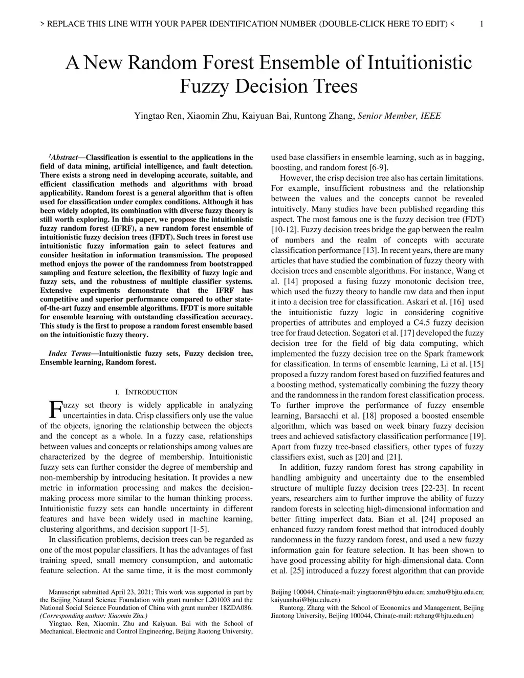 A New Random Forest Ensemble of Intuitionistic Fuzzy Decision Trees
