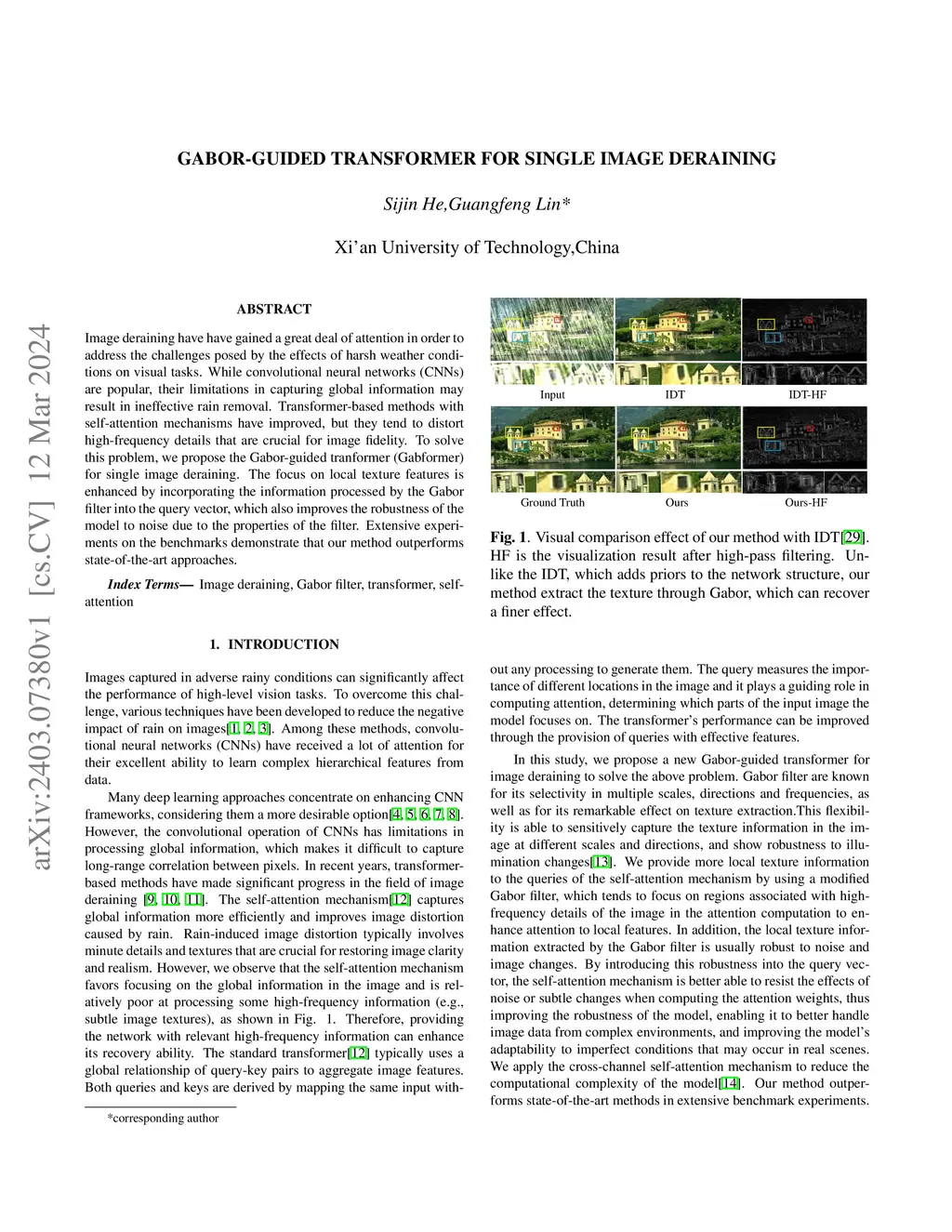 Image deraining have have gained a great deal of attention in order to address the challenges posed by the effects of harsh weather conditions on visual tasks. While convolutional neural networks (CNNs) are popular, their limitations in capturing global information may result in ineffective rain removal. Transformer-based methods with self-attention mechanisms have improved, but they tend to distort high-frequency details that are crucial for image fidelity. To solve this problem, we propose the Gabor-guided tranformer (Gabformer) for single image deraining. The focus on local texture features is enhanced by incorporating the information processed by the Gabor filter into the query vector, which also improves the robustness of the model to noise due to the properties of the filter. Extensive experiments on the benchmarks demonstrate that our method outperforms state-of-the-art approaches.