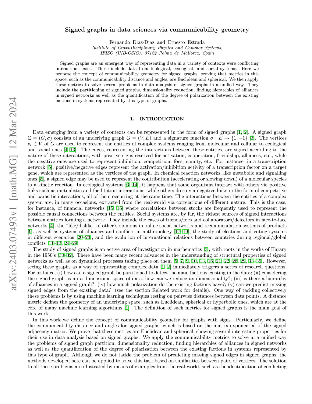 Signed graphs are an emergent way of representing data in a variety of contexts where antagonistic interactions exist. These include data from biological, ecological, and social systems. Here we propose the concept of communicability for signed graphs and explore in depth its mathematical properties. We also prove that the communicability induces a hyperspherical geometric embedding of the signed network, and derive communicability-based metrics that satisfy the axioms of a distance even in the presence of negative edges. We then apply these metrics to solve several problems in the data analysis of signed graphs within a unified framework. These include the partitioning of signed graphs, dimensionality reduction, finding hierarchies of alliances in signed networks, and quantifying the degree of polarization between the existing factions in social systems represented by these types of graphs.