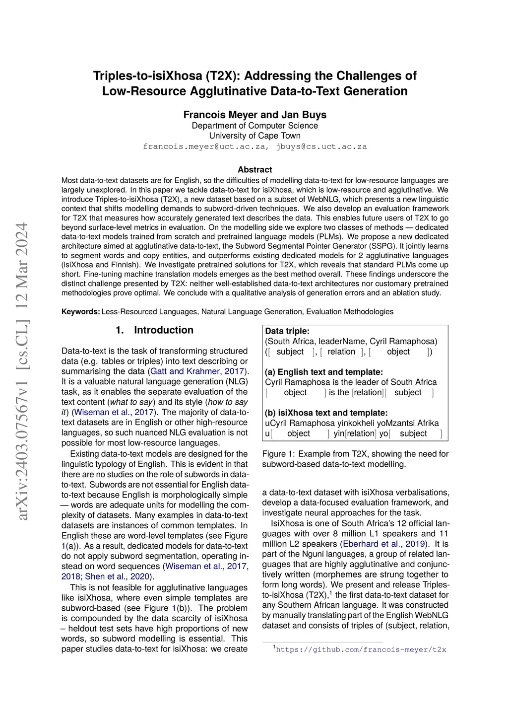 Triples-to-isiXhosa (T2X): Addressing the Challenges of Low-Resource