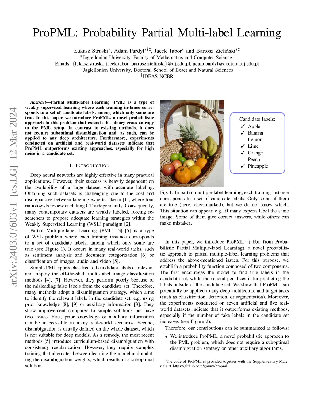 Partial Multi-label Learning (PML) is a type of weakly supervised learning where each training instance corresponds to a set of candidate labels, among which only some are true. In this paper, we introduce \our{}, a novel probabilistic approach to this problem that extends the binary cross entropy to the PML setup. In contrast to existing methods, it does not require suboptimal disambiguation and, as such, can be applied to any deep architecture. Furthermore, experiments conducted on artificial and real-world datasets indicate that \our{} outperforms existing approaches, especially for high noise in a candidate set.