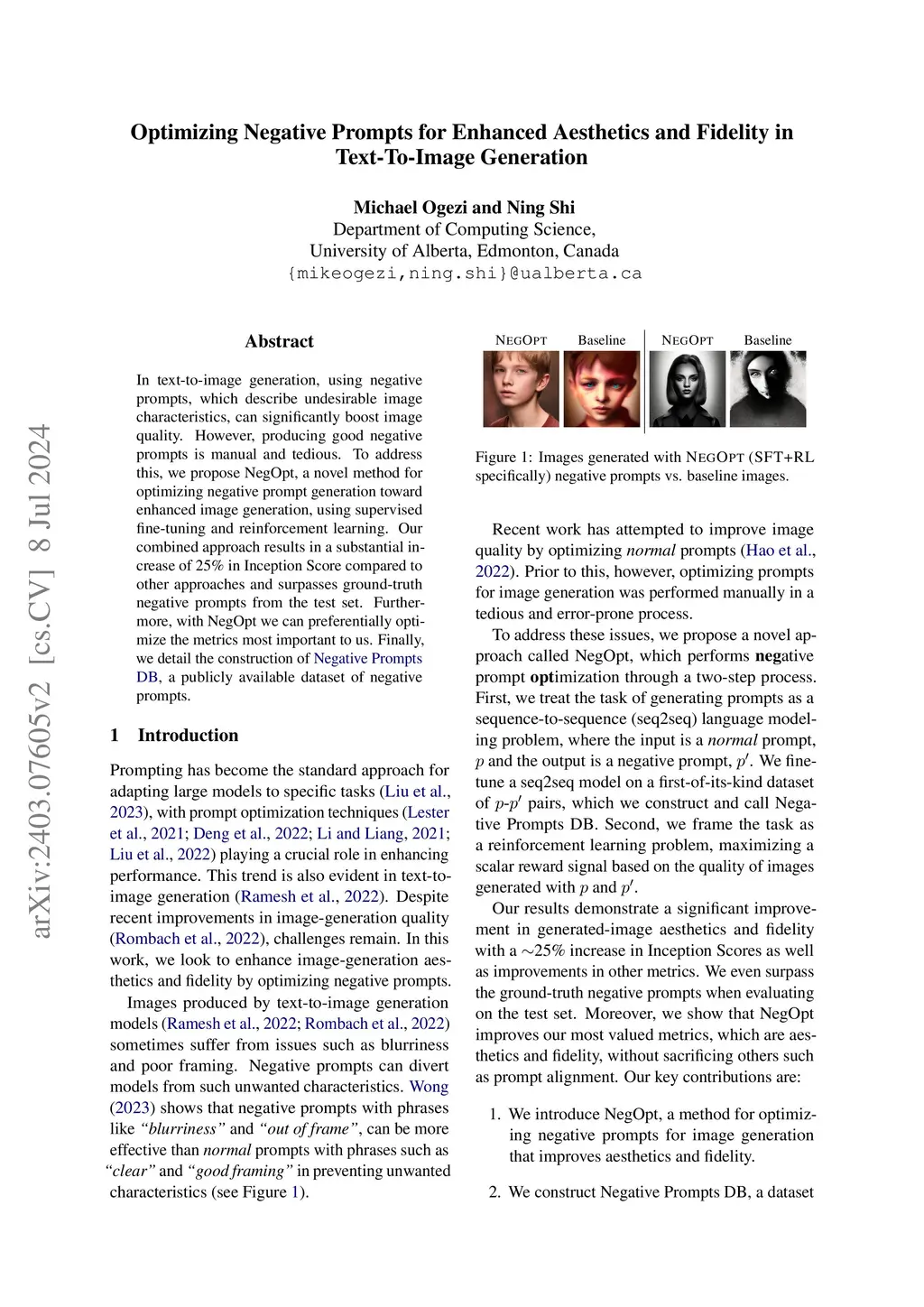 Optimizing Negative Prompts for Enhanced Aesthetics and Fidelity in