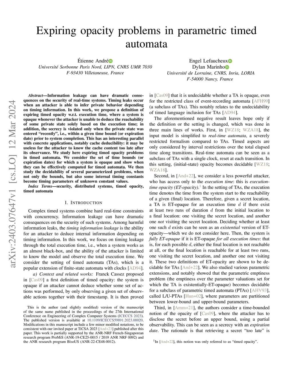 Information leakage can have dramatic consequences on the security of real-time systems. Timing leaks occur when an attacker is able to infer private behavior depending on timing information. In this work, we propose a definition of expiring timed opacity w.r.t. execution time, where a system is opaque whenever the attacker is unable to deduce the reachability of some private state solely based on the execution time; in addition, the secrecy is violated only when the private state was entered "recently", i.e., within a given time bound (or expiration date) prior to system completion. This has an interesting parallel with concrete applications, notably cache deducibility: it may be useless for the attacker to know the cache content too late after its observance. We study here expiring timed opacity problems in timed automata. We consider the set of time bounds (or expiration dates) for which a system is opaque and show when they can be effectively computed for timed automata. We then study the decidability of several parameterized problems, when not only the bounds, but also some internal timing constants become timing parameters of unknown constant values.