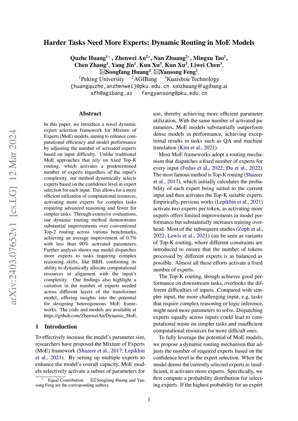 Harder Tasks Need More Experts: Dynamic Routing in MoE Models