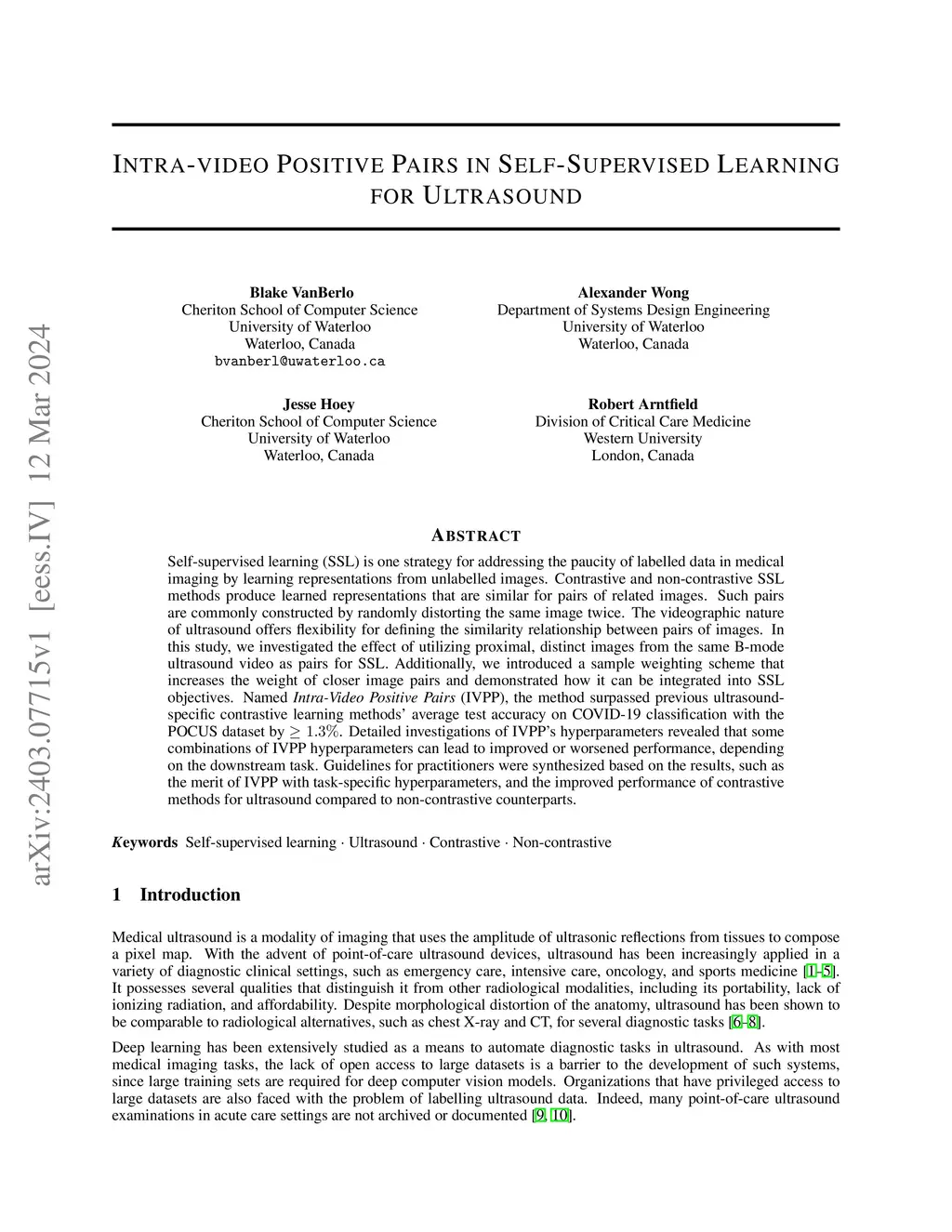 Intra-video Positive Pairs in Self-Supervised Learning for Ultrasound