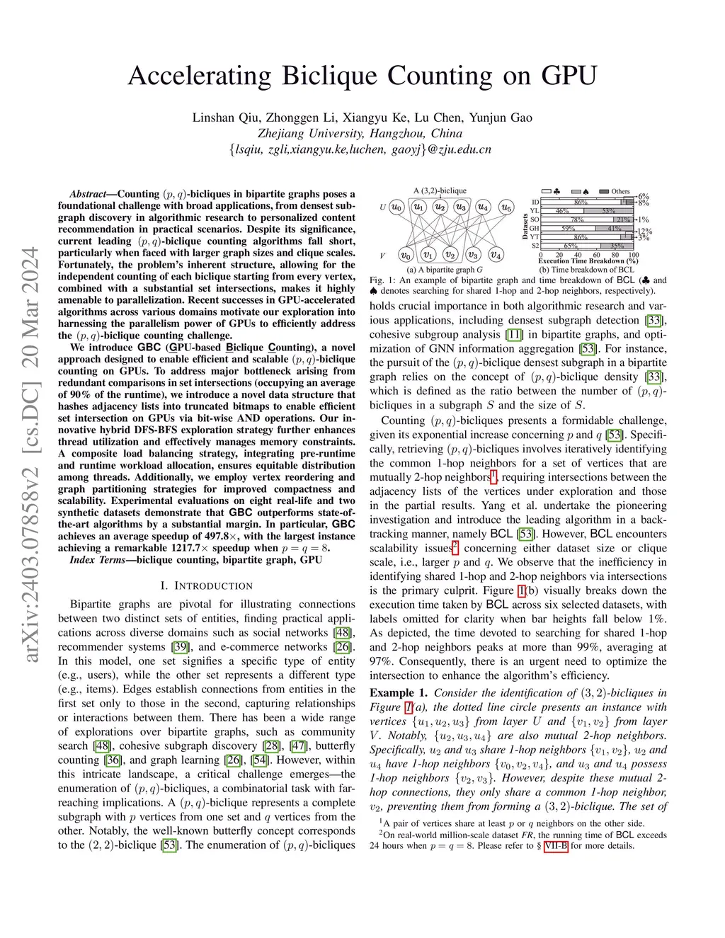 Counting (p,q)-bicliques in bipartite graphs poses a foundational challenge with broad applications, from densest subgraph discovery in algorithmic research to personalized content recommendation in practical scenarios. Despite its significance, current leading (p,q)-biclique counting algorithms fall short, particularly when faced with larger graph sizes and clique scales. Fortunately, the problem's inherent structure, allowing for the independent counting of each biclique starting from every vertex, combined with a substantial set intersections, makes it highly amenable to parallelization. Recent successes in GPU-accelerated algorithms across various domains motivate our exploration into harnessing the parallelism power of GPUs to efficiently address the (p,q)-biclique counting challenge. We introduce GBC (GPU-based Biclique Counting), a novel approach designed to enable efficient and scalable (p,q)-biclique counting on GPUs. To address major bottleneck arising from redundant comparisons in set intersections (occupying an average of 90% of the runtime), we introduce a novel data structure that hashes adjacency lists into truncated bitmaps to enable efficient set intersection on GPUs via bit-wise AND operations. Our innovative hybrid DFS-BFS exploration strategy further enhances thread utilization and effectively manages memory constraints. A composite load balancing strategy, integrating pre-runtime and runtime workload allocation, ensures equitable distribution among threads. Additionally, we employ vertex reordering and graph partitioning strategies for improved compactness and scalability. Experimental evaluations on eight real-life and two synthetic datasets demonstrate that GBC outperforms state-of-the-art algorithms by a substantial margin. In particular, GBC achieves an average speedup of 497.8x, with the largest instance achieving a remarkable 1217.7x speedup when p = q = 8.