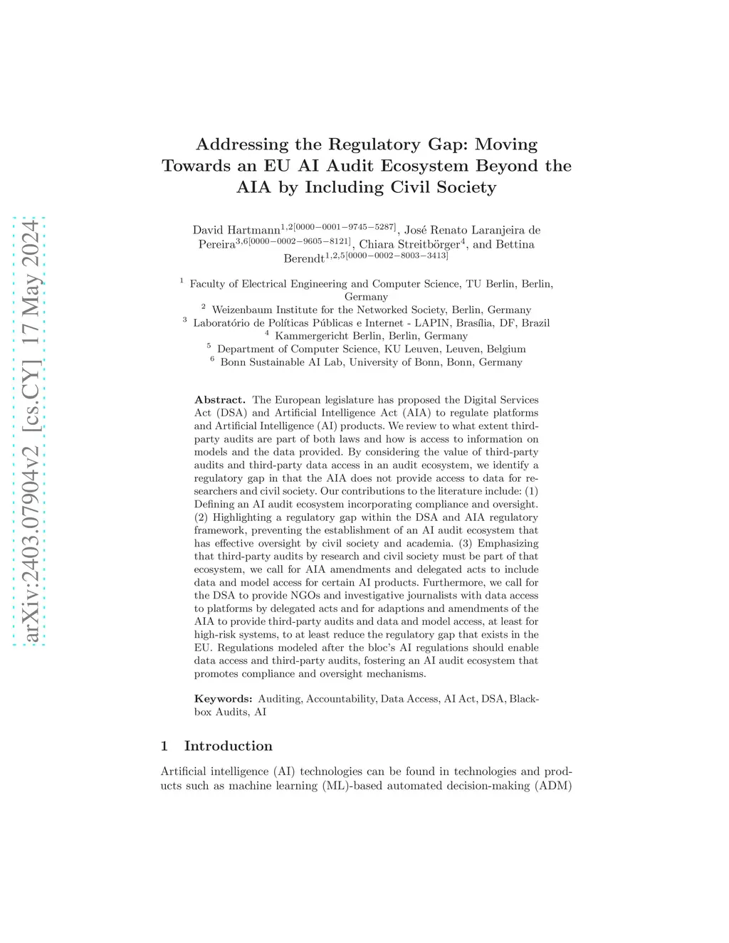 Addressing the regulatory gap: moving towards an EU AI audit ecosystem beyond the AI Act by including civil society