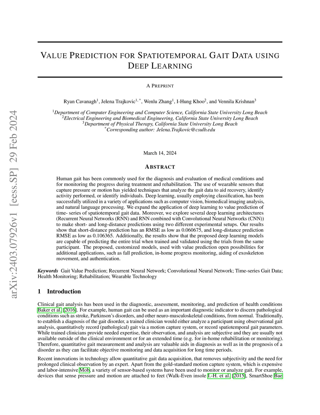 Value Prediction for Spatiotemporal Gait Data Using Deep Learning
