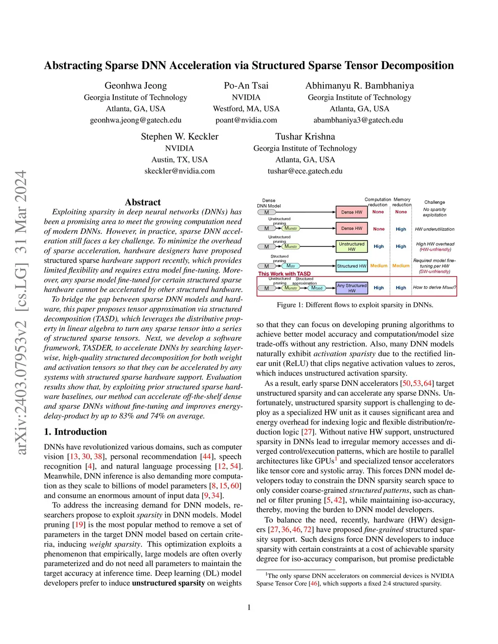 Exploiting sparsity in deep neural networks (DNNs) has been a promising area for meeting the growing computation requirements. To minimize the overhead of sparse acceleration, hardware designers have proposed structured sparsity support, but it provides limited flexibility and requires extra model fine-tuning. Moreover, any sparse model fine-tuned for certain structured sparse HW cannot be accelerated by other structured hardware. To enable acceleration using unstructured sparsity of DNNs on structured sparse hardware, we propose an approximation method leveraging the distributive property in linear algebra to turn any sparse tensor into a series of structured sparse tensors. We also develop a software framework, TASDER, to apply high-quality structured approximation on weights and activations of DNNs. Our method accelerates dense and sparse DNNs without fine-tuning and improves energy-delay-product (EDP) by up to 83% and 74%. It achieves up to 39% speed-up on a real system.