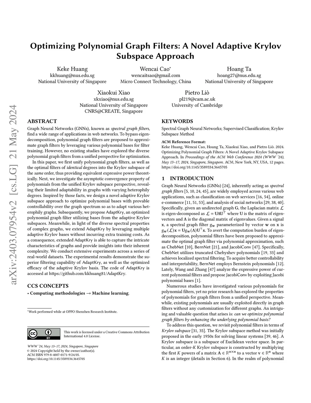 Optimizing Polynomial Graph Filters: A Novel Adaptive Krylov Subspace