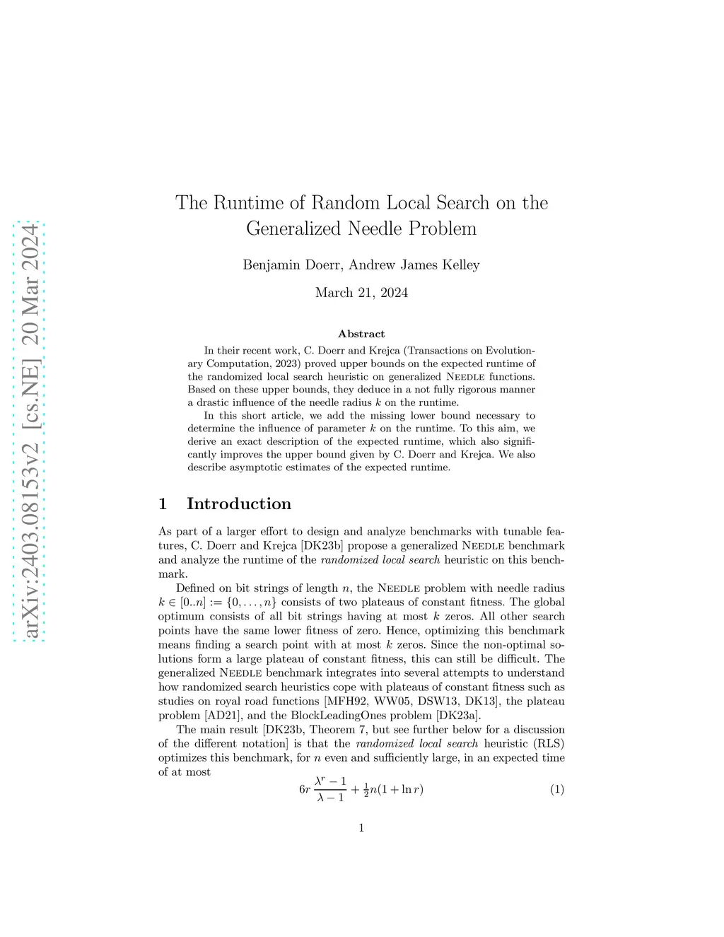In their recent work, C. Doerr and Krejca (Transactions on Evolutionary Computation, 2023) proved upper bounds on the expected runtime of the randomized local search heuristic on generalized Needle functions. Based on these upper bounds, they deduce in a not fully rigorous manner a drastic influence of the needle radius on the runtime. In this short article, we add the missing lower bound necessary to determine the influence of parameter on the runtime. To this aim, we derive an exact description of the expected runtime, which also significantly improves the upper bound given by C. Doerr and Krejca. We also describe asymptotic estimates of the expected runtime.