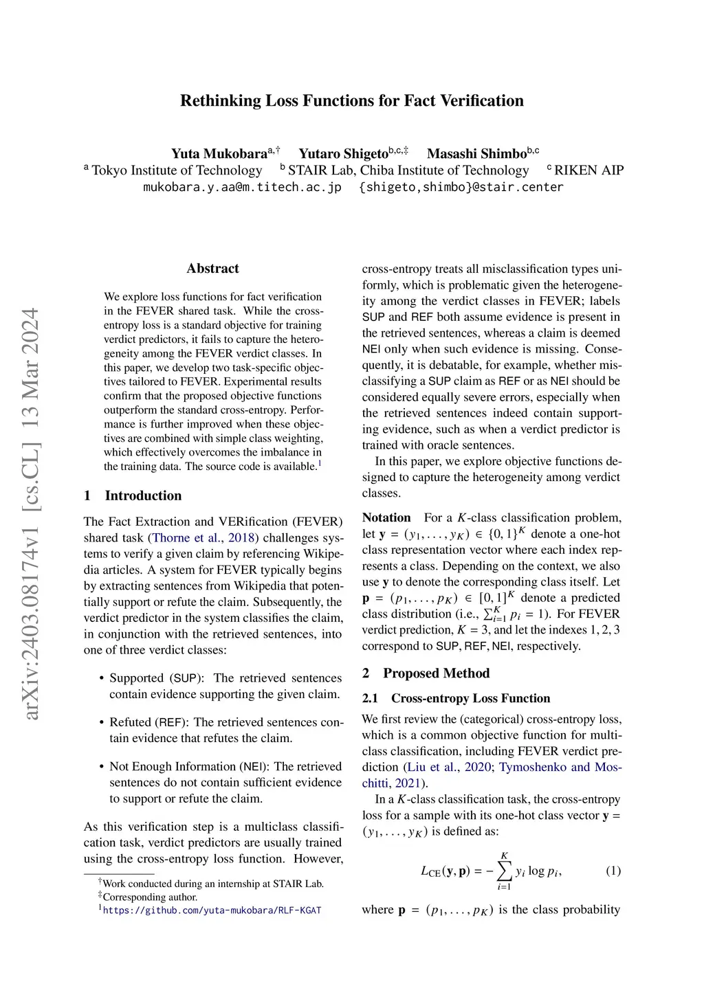 Rethinking Loss Functions for Fact Verification
