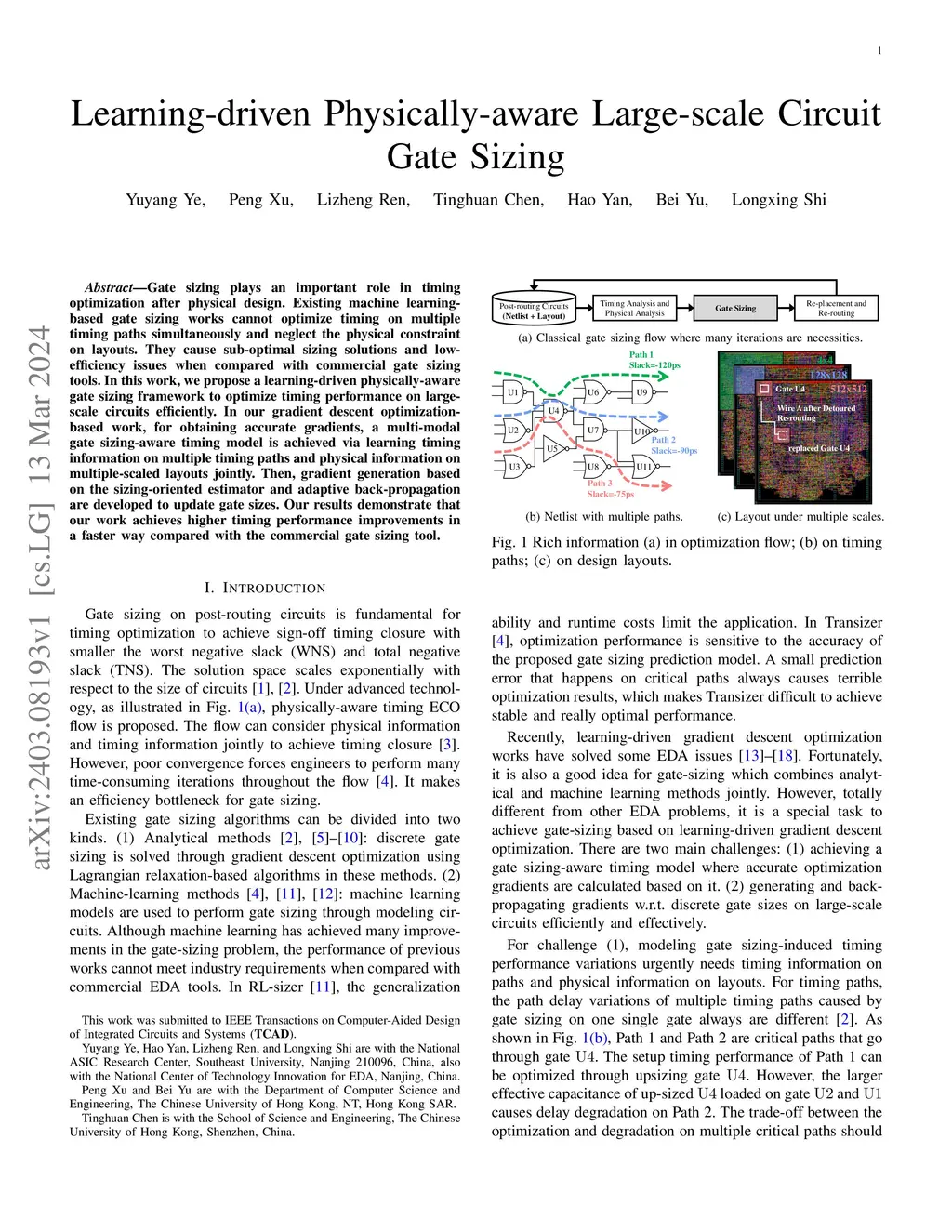 Learning-driven Physically-aware Large-scale Circuit Gate Sizing