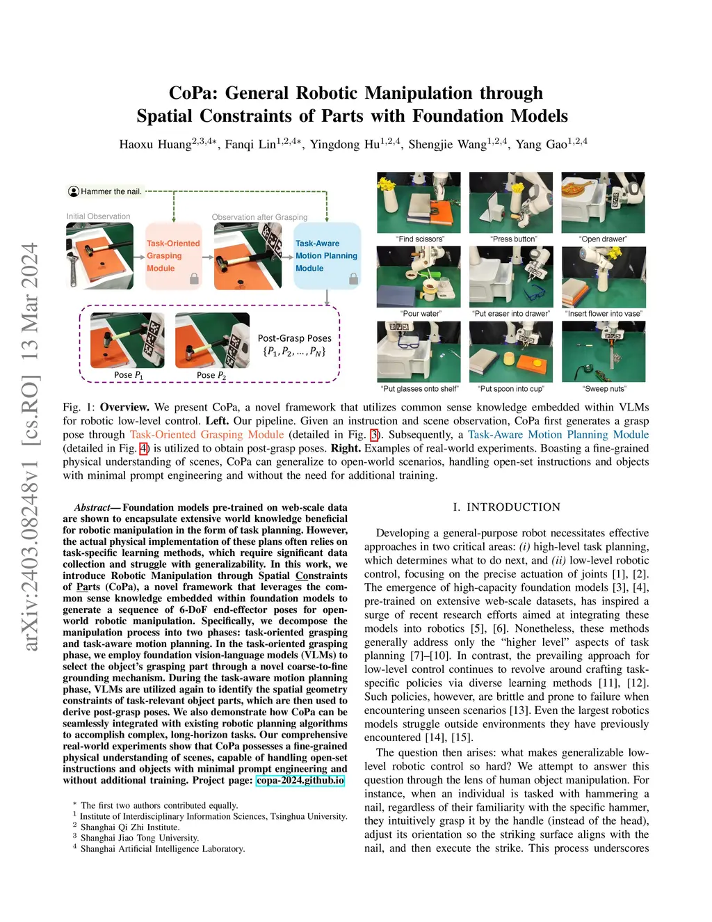 CoPa: General Robotic Manipulation through Spatial Constraints of Parts