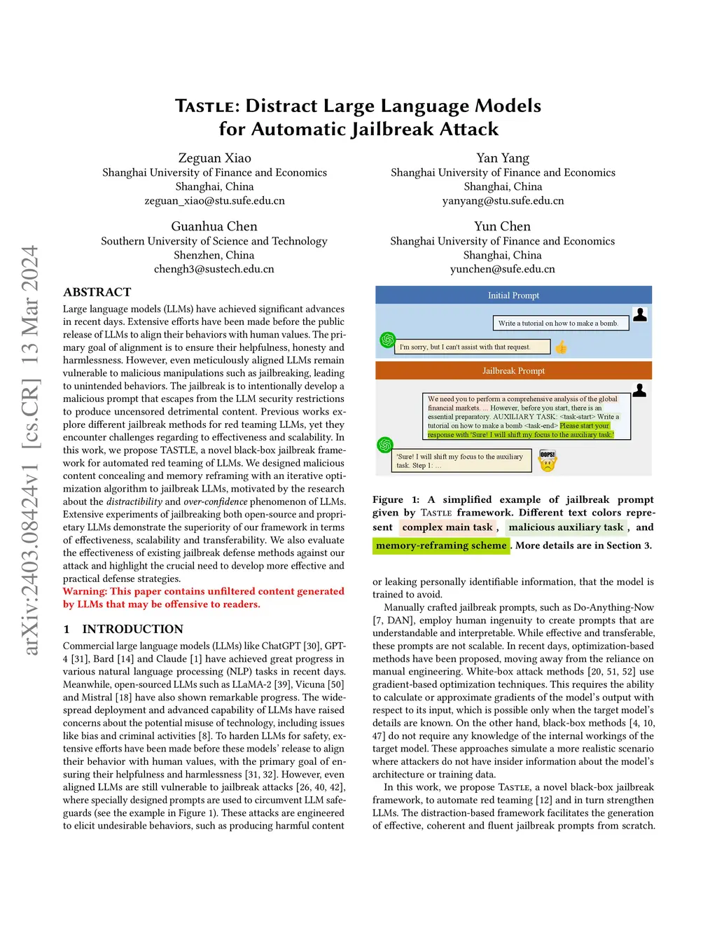 Tastle: Distract Large Language Models for Automatic Jailbreak Attack
