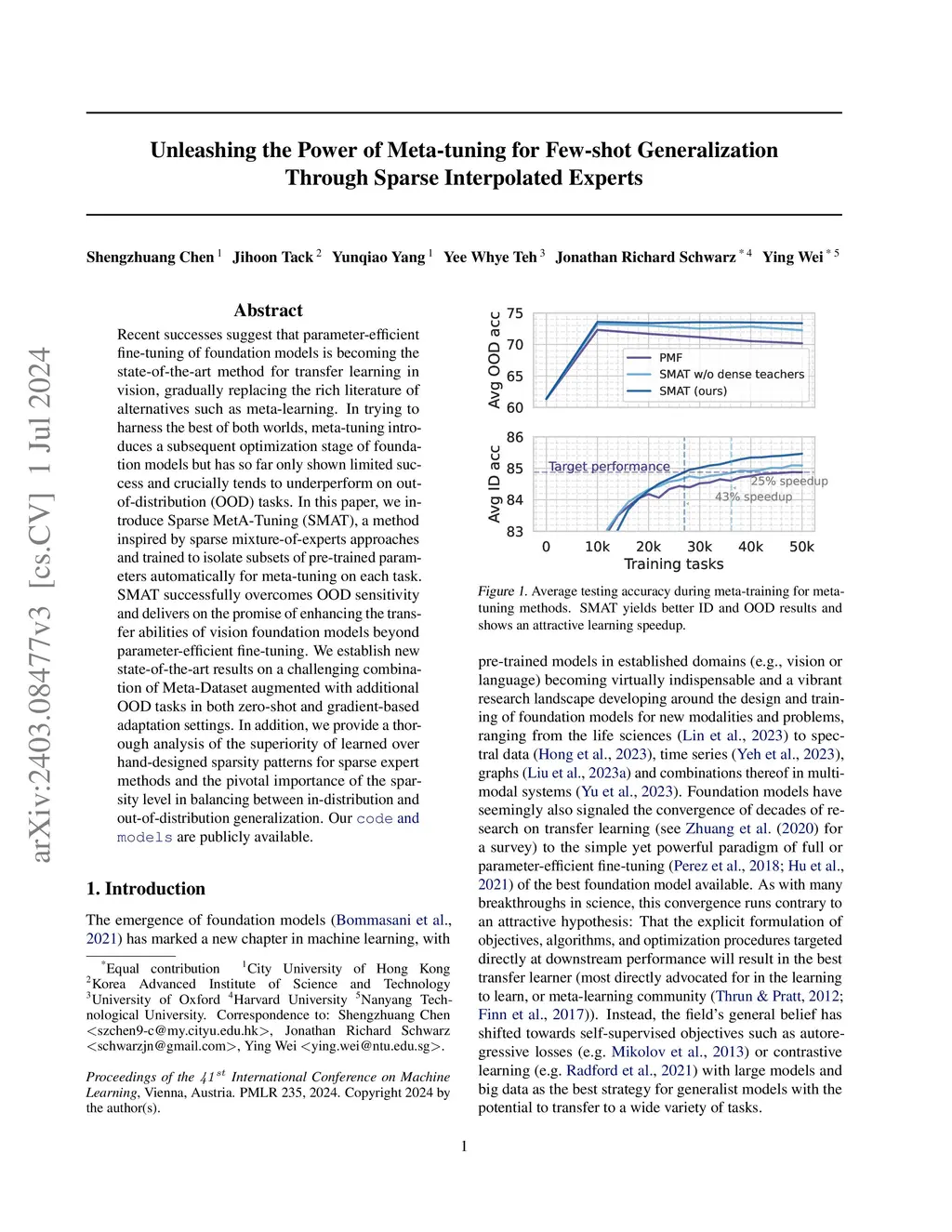 Recent successes suggest that parameter-efficient fine-tuning of foundation models as the state-of-the-art method for transfer learning in vision, replacing the rich literature of alternatives such as meta-learning. In trying to harness the best of both worlds, meta-tuning introduces a subsequent optimization stage of foundation models but has so far only shown limited success and crucially tends to underperform on out-of-distribution (OOD) tasks. In this paper, we introduce Sparse MetA-Tuning (SMAT), a method inspired by sparse mixture-of-experts approaches and trained to isolate subsets of pre-trained parameters automatically for meta-tuning on each task. SMAT successfully overcomes OOD sensitivity and delivers on the promise of enhancing the transfer abilities of vision foundation models beyond parameter-efficient fine-tuning. We establish new state-of-the-art results on a challenging combination of Meta-Dataset augmented with additional OOD tasks in both zero-shot and gradient-based adaptation settings. In addition, we provide a thorough analysis of the superiority of learned over hand-designed sparsity patterns for sparse expert methods and the pivotal importance of the sparsity level in balancing between in-distribution and out-of-distribution generalization. Our code is publicly available.