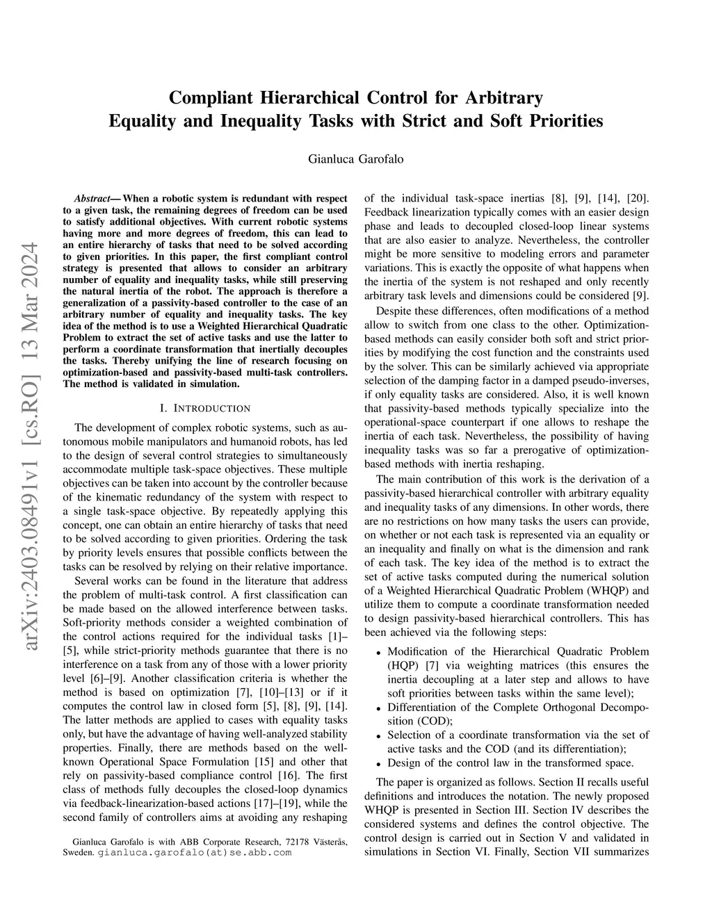 Compliant Hierarchical Control for Arbitrary Equality and Inequality