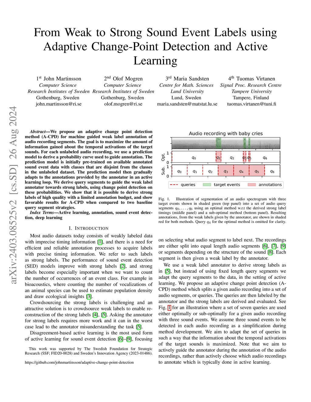 From Weak to Strong Sound Event Labels using Adaptive Change-Point
