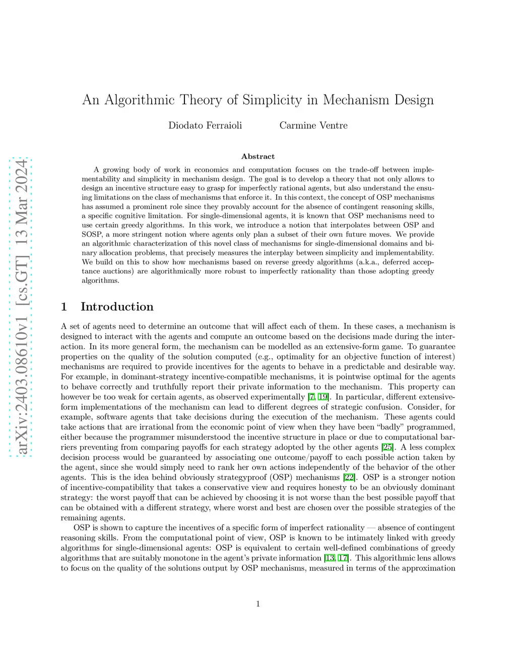 A growing body of work in economics and computation focuses on the trade-off between implementability and simplicity in mechanism design. The goal is to develop a theory that not only allows to design an incentive structure easy to grasp for imperfectly rational agents, but also understand the ensuing limitations on the class of mechanisms that enforce it. In this context, the concept of OSP mechanisms has assumed a prominent role since they provably account for the absence of contingent reasoning skills, a specific cognitive limitation. For single-dimensional agents, it is known that OSP mechanisms need to use certain greedy algorithms. In this work, we introduce a notion that interpolates between OSP and SOSP, a more stringent notion where agents only plan a subset of their own future moves. We provide an algorithmic characterization of this novel class of mechanisms for single-dimensional domains and binary allocation problems, that precisely measures the interplay between simplicity and implementability. We build on this to show how mechanisms based on reverse greedy algorithms (a.k.a., deferred acceptance auctions) are algorithmically more robust to imperfectly rationality than those adopting greedy algorithms.
