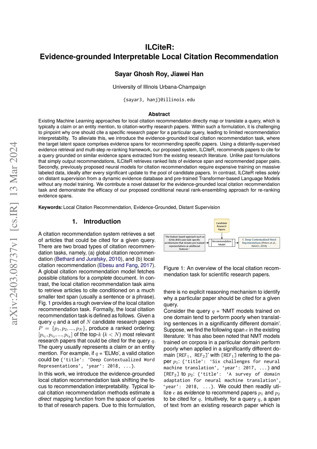 ILCiteR: Evidence-grounded Interpretable Local Citation Recommendation