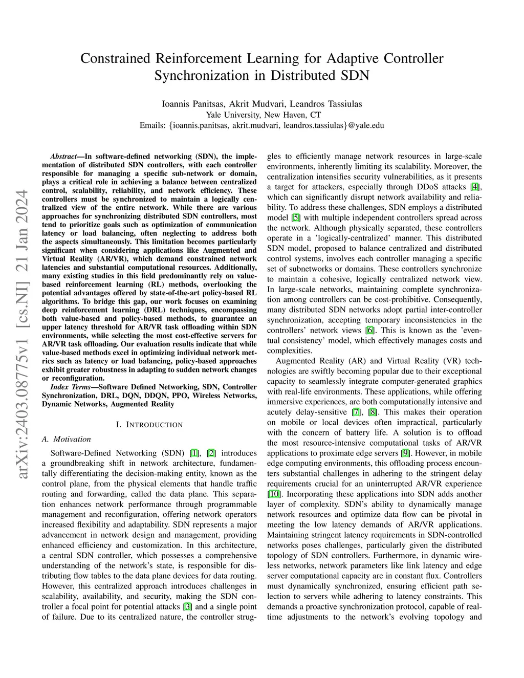 In software-defined networking (SDN), the implementation of distributed SDN controllers, with each controller responsible for managing a specific sub-network or domain, plays a critical role in achieving a balance between centralized control, scalability, reliability, and network efficiency. These controllers must be synchronized to maintain a logically centralized view of the entire network. While there are various approaches for synchronizing distributed SDN controllers, most tend to prioritize goals such as optimization of communication latency or load balancing, often neglecting to address both the aspects simultaneously. This limitation becomes particularly significant when considering applications like Augmented and Virtual Reality (AR/VR), which demand constrained network latencies and substantial computational resources. Additionally, many existing studies in this field predominantly rely on value-based reinforcement learning (RL) methods, overlooking the potential advantages offered by state-of-the-art policy-based RL algorithms. To bridge this gap, our work focuses on examining deep reinforcement learning (DRL) techniques, encompassing both value-based and policy-based methods, to guarantee an upper latency threshold for AR/VR task offloading within SDN environments, while selecting the most cost-effective servers for AR/VR task offloading. Our evaluation results indicate that while value-based methods excel in optimizing individual network metrics such as latency or load balancing, policy-based approaches exhibit greater robustness in adapting to sudden network changes or reconfiguration.