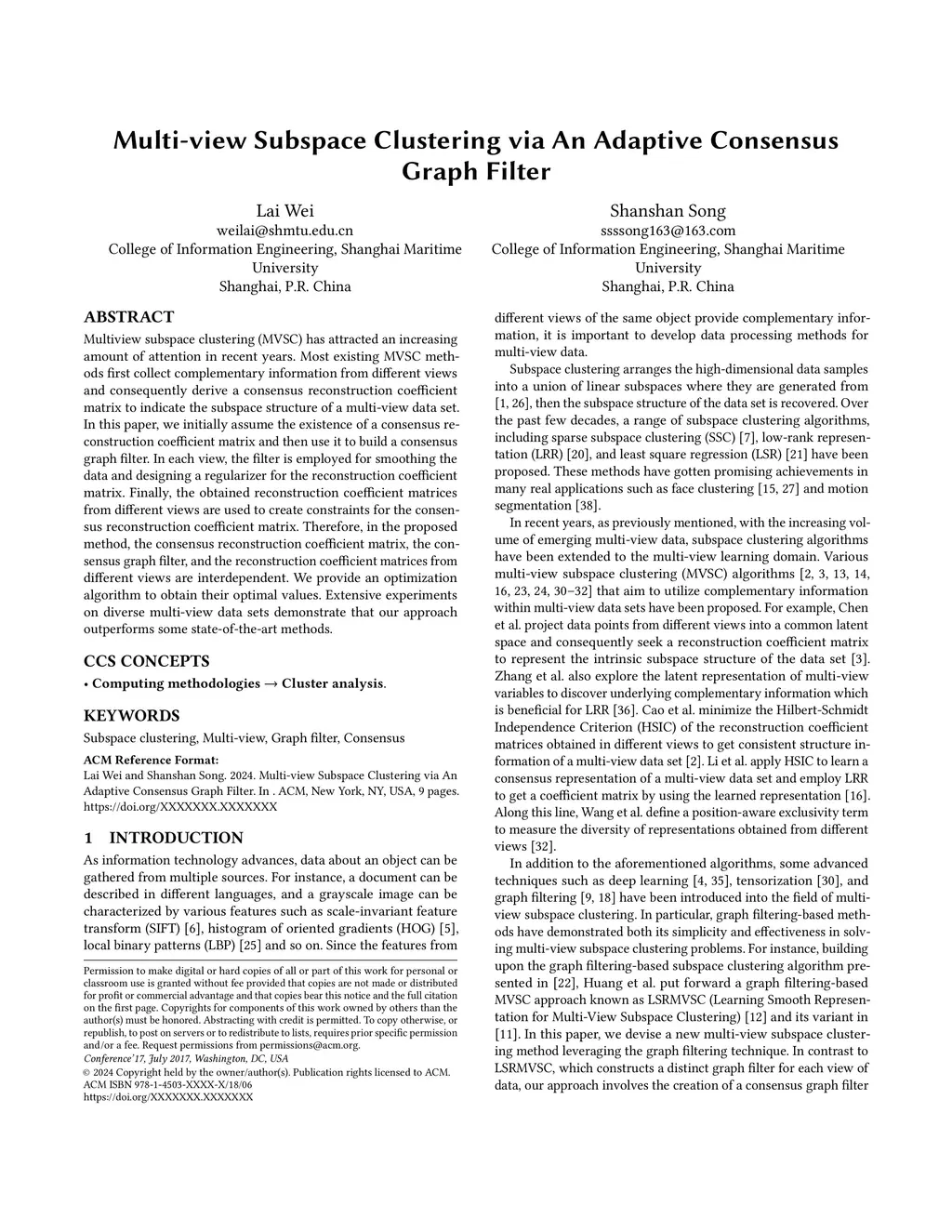Multi-view Subspace Clustering via An Adaptive Consensus Graph Filter