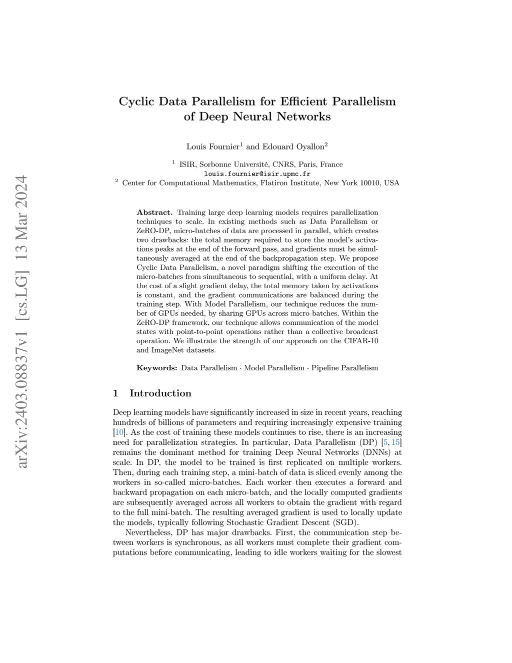 Cyclic Data Parallelism for Efficient Parallelism of Deep Neural