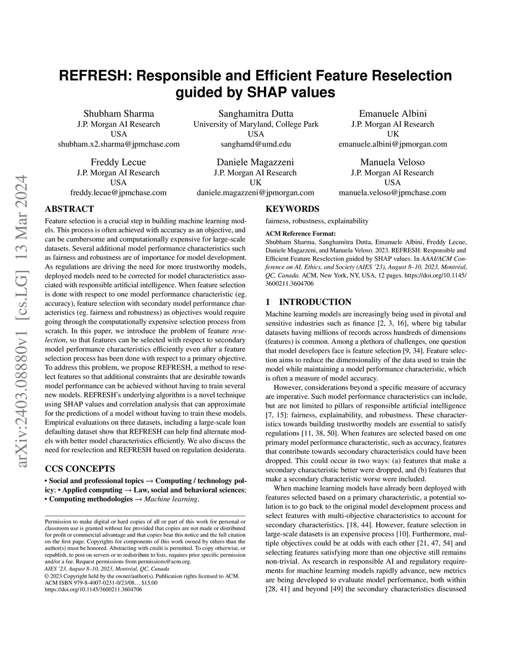 REFRESH: Responsible and Efficient Feature Reselection Guided by SHAP