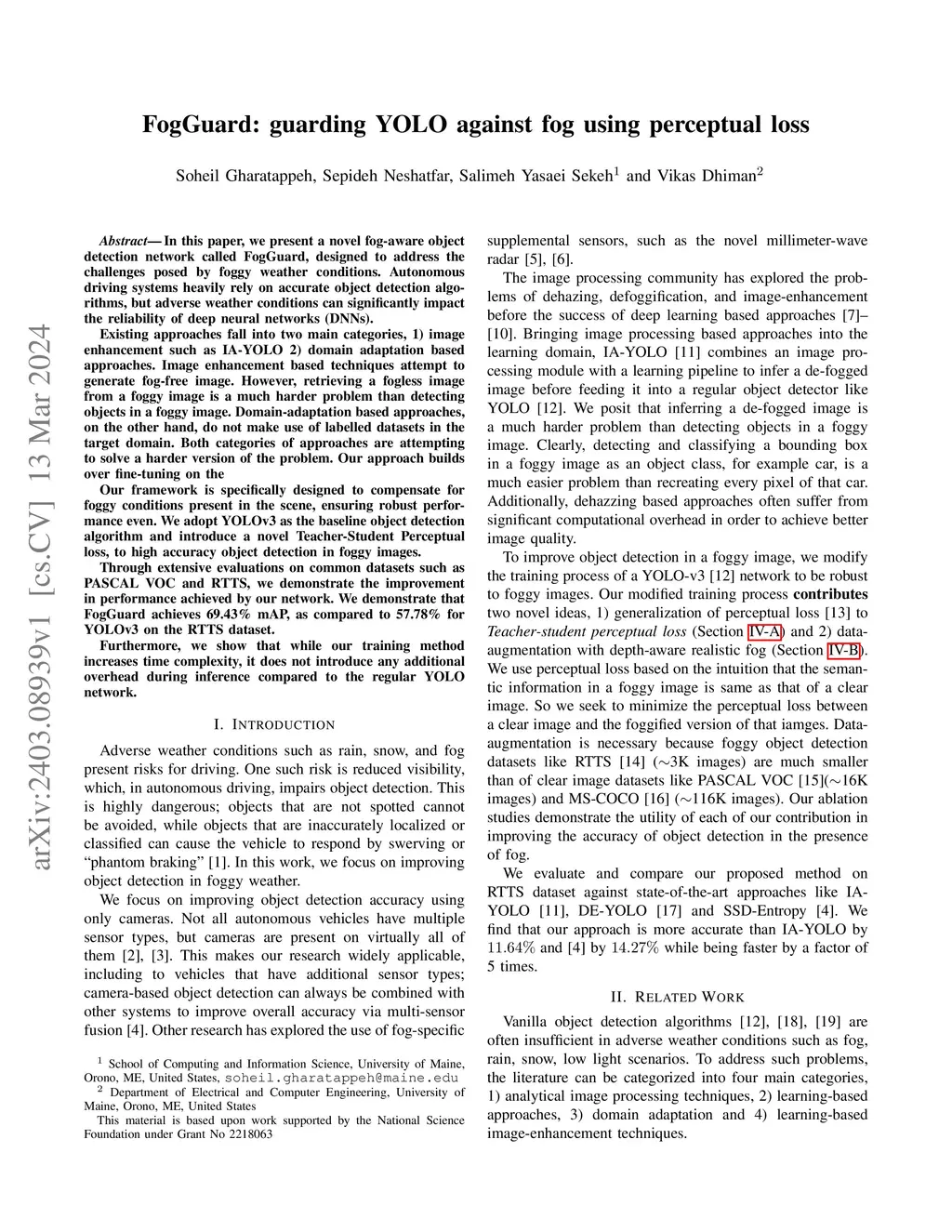 FogGuard: guarding YOLO against fog using perceptual loss
