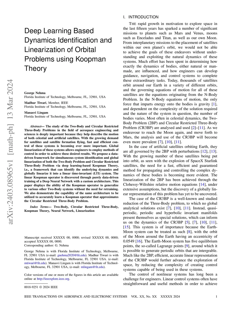 The study of the Two-Body and Circular Restricted Three-Body Problems in the field of aerospace engineering and sciences is deeply important because they help describe the motion of both celestial and artificial satellites. With the growing demand for satellites and satellite formation flying, fast and efficient control of these systems is becoming ever more important. Global linearization of these systems allows engineers to employ methods of control in order to achieve these desired results. We propose a data-driven framework for simultaneous system identification and global linearization of the Circular, Elliptical and Perturbed Two-Body Problem as well as the Circular Restricted Three-Body Problem around the L1 Lagrange point via deep learning-based Koopman Theory, i.e., a framework that can identify the underlying dynamics and globally linearize it into a linear time-invariant (LTI) system. The linear Koopman operator is discovered through purely data-driven training of a Deep Neural Network with a custom architecture. This paper displays the ability of the Koopman operator to generalize to various other Two-Body systems without the need for retraining. We also demonstrate the capability of the same architecture to be utilized to accurately learn a Koopman operator that approximates the Circular Restricted Three-Body Problem.