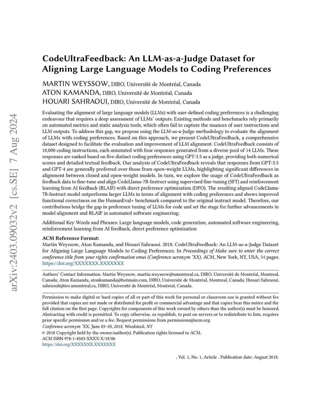 Evaluating the alignment of large language models (LLMs) with user-defined coding preferences is a challenging endeavour that requires assessing intricate textual LLMs' outputs. By relying on automated metrics and static analysis tools, existing benchmarks fail to assess nuances in user instructions and LLM outputs, highlighting the need for large-scale datasets and benchmarks for LLM preference alignment. In this paper, we introduce CodeUltraFeedback, a preference dataset of 10,000 complex instructions to tune and align LLMs to coding preferences through AI feedback. We generate responses to the instructions using a pool of 14 diverse LLMs, which we then annotate according to their alignment with five coding preferences using the LLM-as-a-Judge approach with GPT-3.5, producing both numerical and textual feedback. We also present CODAL-Bench, a benchmark for assessing LLM alignment with these coding preferences. Our results show that CodeLlama-7B-Instruct, aligned through reinforcement learning from AI feedback (RLAIF) with direct preference optimization (DPO) using CodeUltraFeedback's AI feedback data, outperforms 34B LLMs on CODAL-Bench, validating the utility of CodeUltraFeedback for preference tuning. Furthermore, we show our DPO-aligned CodeLlama model improves functional correctness on HumanEval+ compared to the unaligned base model. Therefore, our contributions bridge the gap in preference tuning of LLMs for code and set the stage for further advancements in model alignment and RLAIF for code intelligence. Our code and data are available at https://github.com/martin-wey/CodeUltraFeedback.